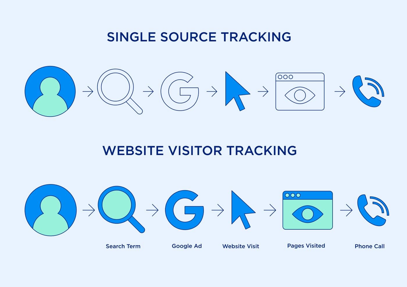 If you’re like most of our customers who track calls from their website, when you started using Call Tracking, you set up single source tracking, which involves setting up a single CallRail number that you put on your site in place of your main business number. This lets you know who called directly from your website at that moment. This is a great start, but there’s a second type of tracking – website visitor tracking – which can give you even more visibility.