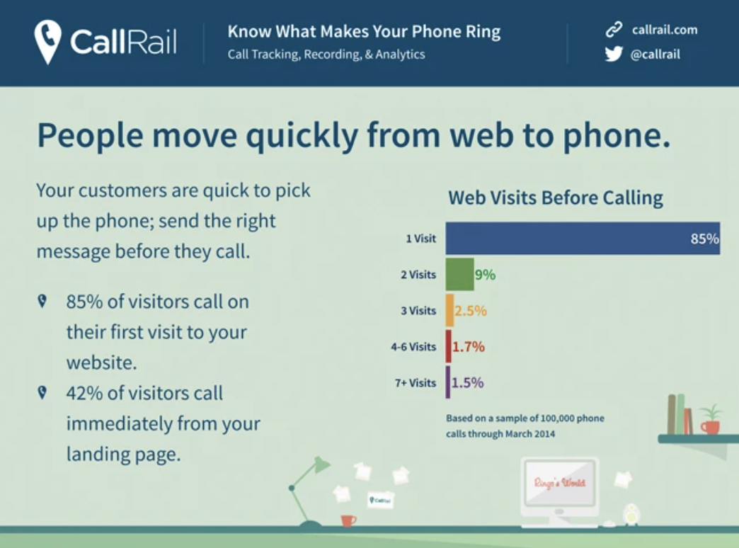 Based on a sample of 100,000 phone calls collected from CallRail through March of 2014, customers only need one visit on your website before deciding to call.